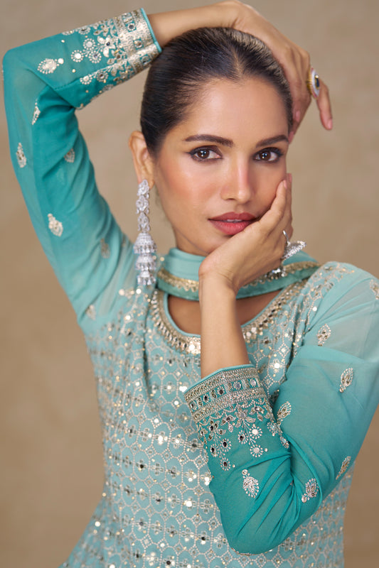 Pastel Blue Designer Palazzo Suit