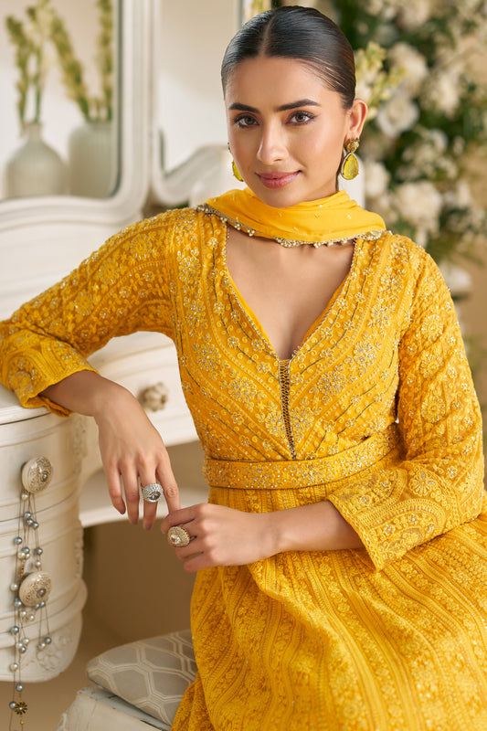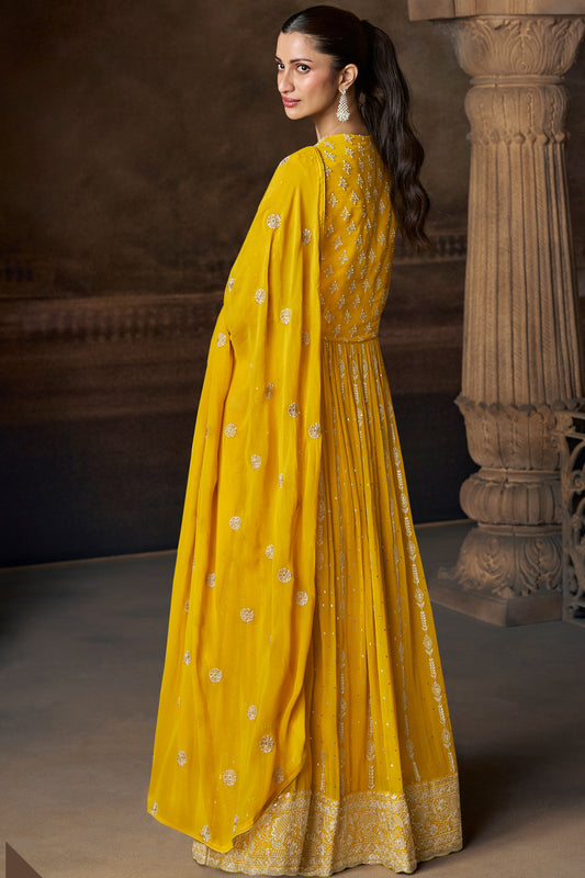 Mustard Yellow Heavy Embroidered Anarkali Suit with Dupatta