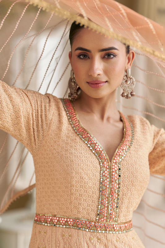 Cream Peach Embroidered Anarkali Suit