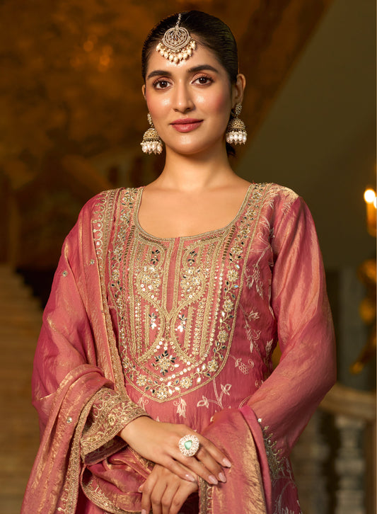 Rose Gold Embroidered Festive Suit Set