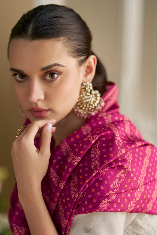 Ivory Anarkali Suit with Rani Pink Dupatta
