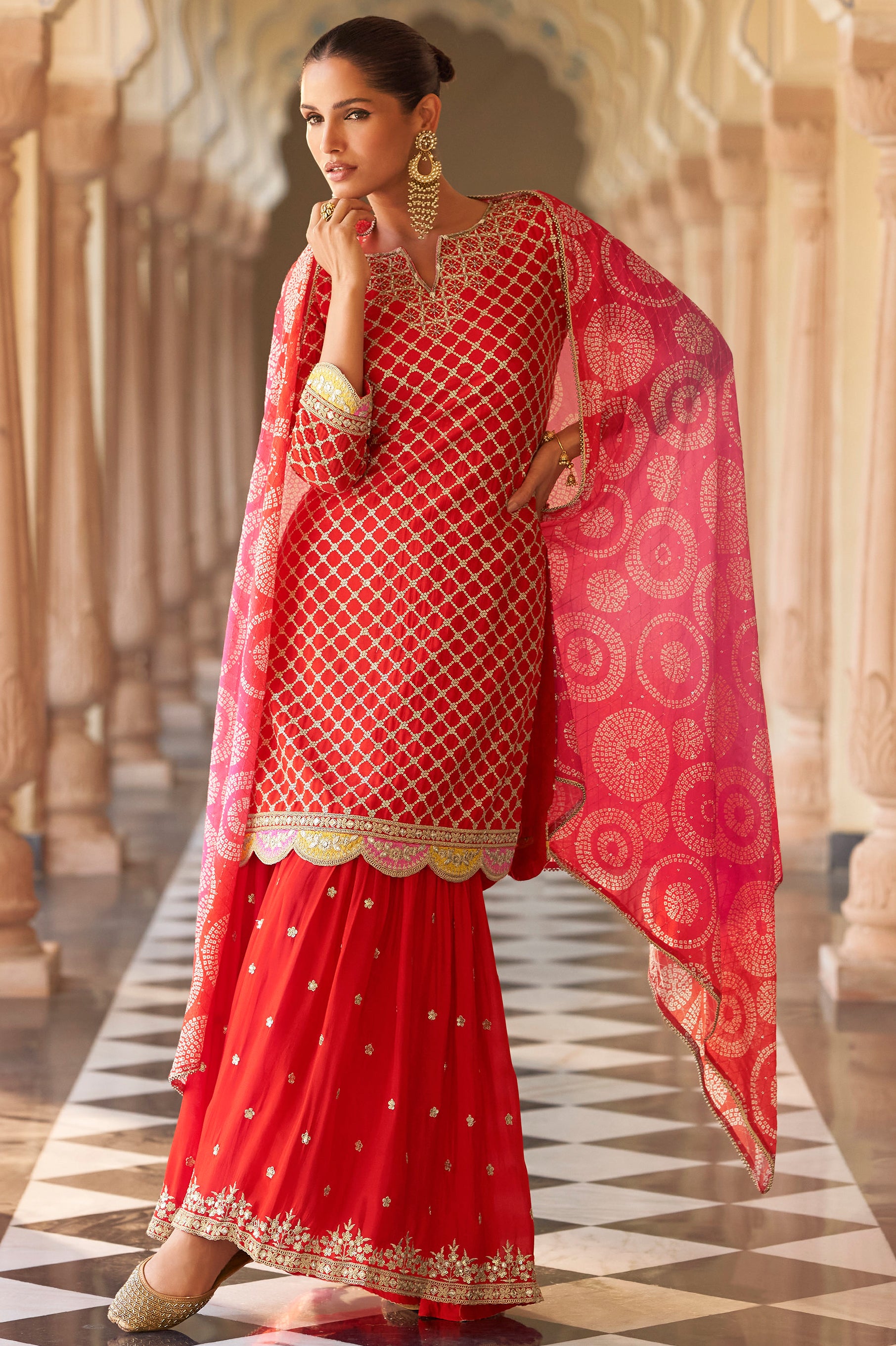 Embroidered Red Sharara Suit