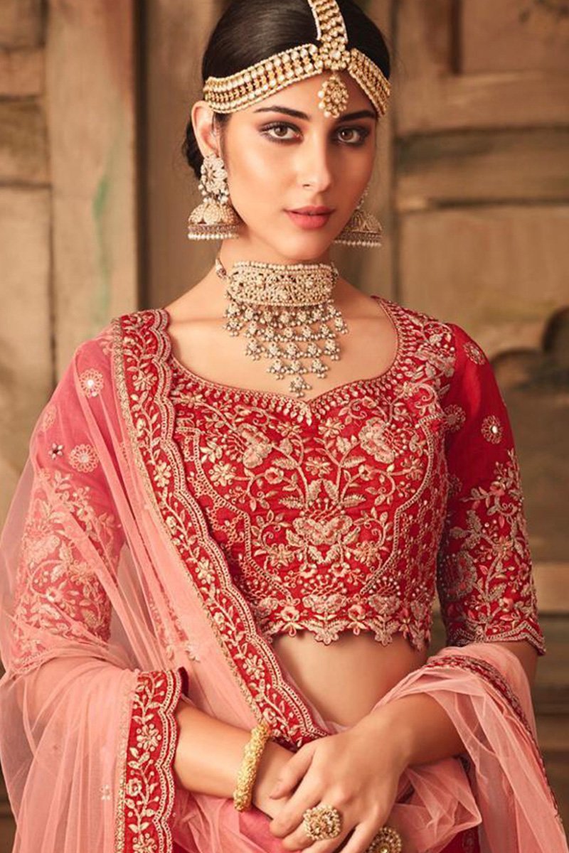 Gorgeous Candy Red Silk Lehenga Set